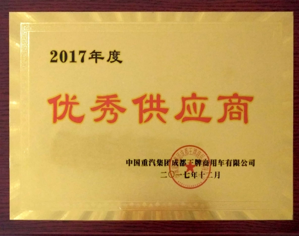 2017年12月,公司榮獲重汽王牌2017年度“優(yōu)秀供應(yīng)商”獎(jiǎng)項(xiàng)